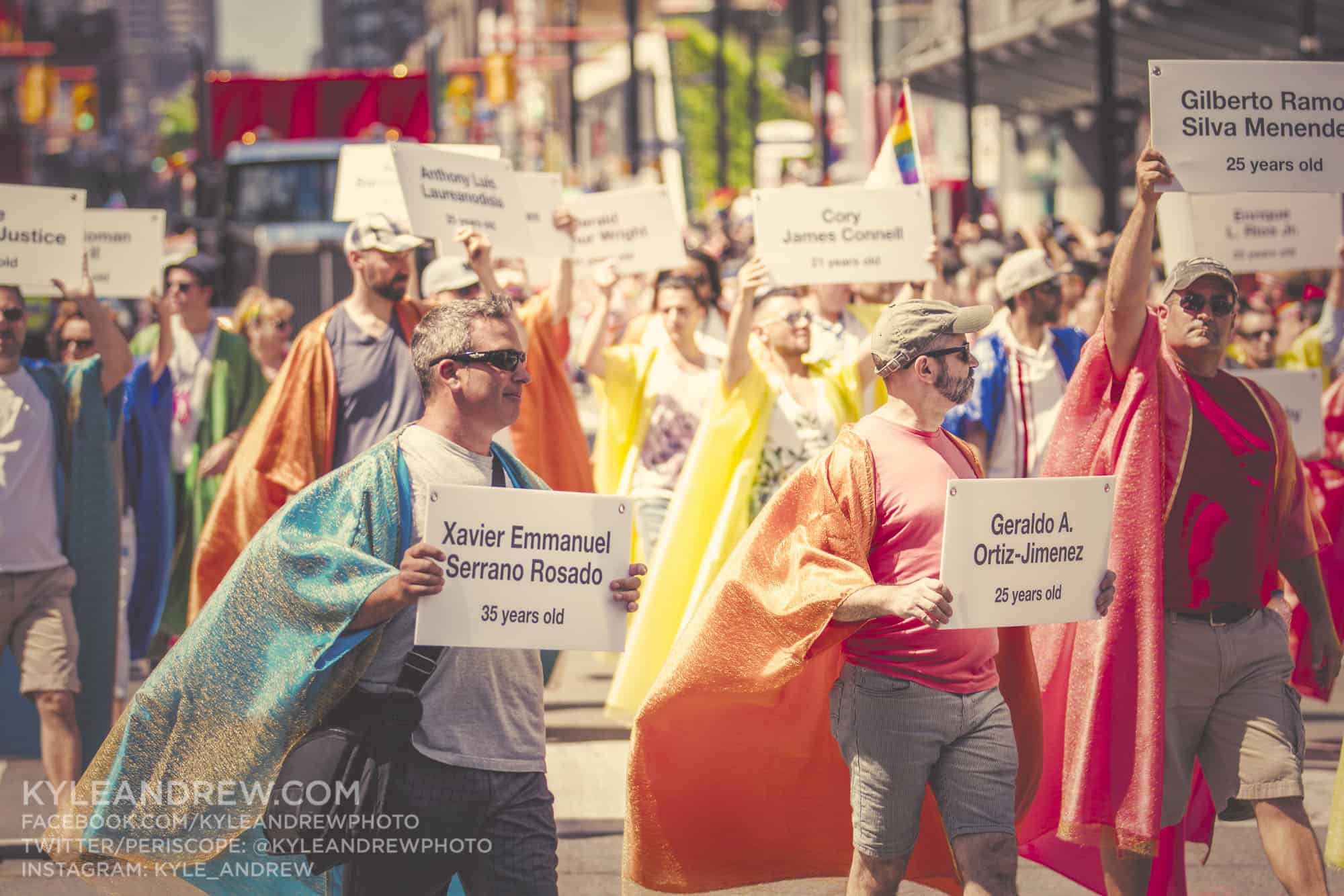 [/bgsection] [bgsection pex_attr_title=”Follow Kyle on Social Media” pex_attr_subtitle=”Below you will find links to my social media accounts. I would appreciate it if you followed me as I continue to document the events of my life. ” pex_attr_undefined=”undefined” pex_attr_style=”section-light2″ pex_attr_bgcolor=”EDF5F7″ pex_attr_image=”http://www.kyleandrew.com/wp-content/uploads/2016/07/background_pride.jpg” pex_attr_imageopacity=”0.2″ pex_attr_bgimagestyle=”static” pex_attr_titlecolor=”252525″ pex_attr_textcolor=”777777″ pex_attr_height=””][pexservices pex_attr_set=”social-media-pride-2016″ pex_attr_layout=”default” pex_attr_columns=”3″ pex_attr_parallax=”disabled” pex_attr_crop=”enabled” pex_attr_bgcolor=”” pex_attr_textcolor=”” pex_attr_undefined=”undefined” pex_attr_title=”” pex_attr_desc=”” pex_attr_btntext=”” pex_attr_btnlink=”” pex_attr_inner=”true”][/pexservices][/bgsection] [bgsection pex_attr_title=”” pex_attr_subtitle=”” pex_attr_undefined=”undefined” pex_attr_style=”section-light” pex_attr_bgcolor=”f7f7f7″ pex_attr_image=”” pex_attr_imageopacity=”0.1″ pex_attr_bgimagestyle=”static” pex_attr_titlecolor=”252525″ pex_attr_textcolor=”777777″ pex_attr_height=””]Without a doubt, the tragic events that occurred at Pulse Nightclub in Orlando last month cast a shadow over the days main event. But if anything, the LGBQT community is a resilient one, and everywhere you looked respect was being paid to the fallen. Especially touching were the volunteers carrying large signs with the names of all forty-nine victims. We can never forget tragedies like this, and we must choose to learn from them. Most importantly, we can never forget or lose faith in the fact that love will always defeat hate.